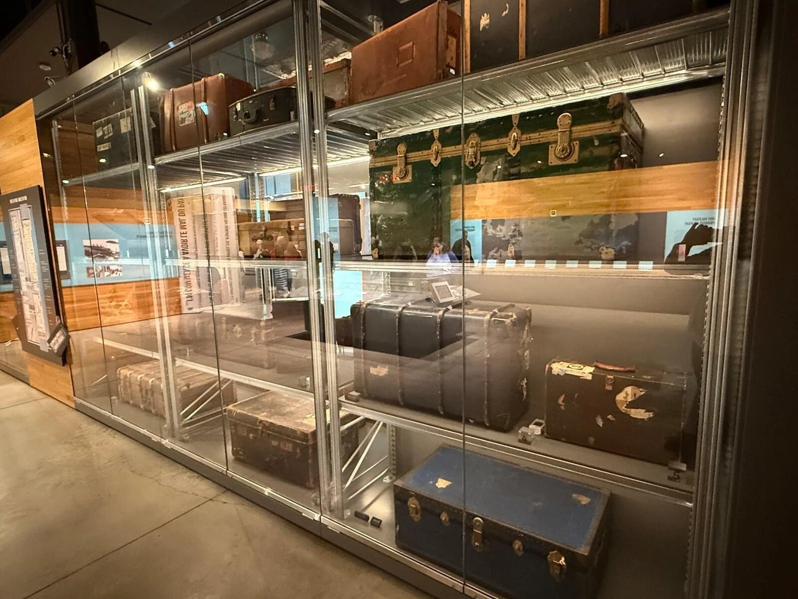 As we walk through the exhibits, we are struck by the display of suitcases—from regal wardrobe chests to a modest worn cases that might have held everything someone owned before a new start. Many stories center on immigrants’ hopes to build brighter futures for their children—stories of deep sacrifice and determination. These are journeys not just across water, but toward opportunity and belonging.